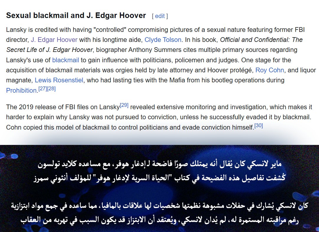 يقول أن رجل المافيا “ماير لانسكي” يبتز إدغار هوفر.. وبحيازته صور عنه وهو يمارس المثلية الجنسية.