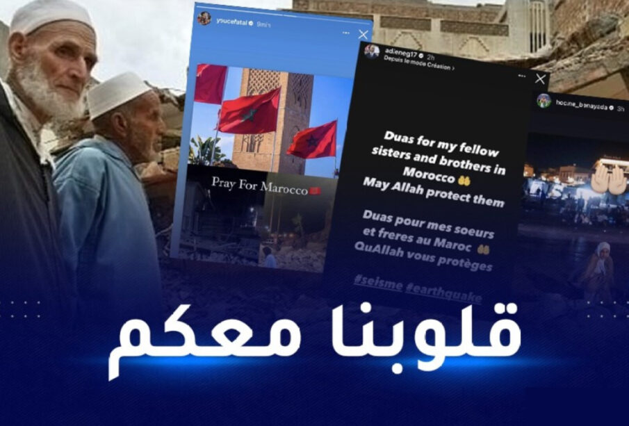 وأطلق رياض محرز و نبيل بن طالب، وعدد من العناصر الوطنية، صورا لـ”زلزال” المغرب، عبر خاصية “ستوري” في حساباتهم الشخصية على “أنستغرام” ترحموا من خلالها على أرواح الضحايا، كما تمنوا الشفاء للجرحى، معلنين تضامنهم التام مع الشعب المغربي.