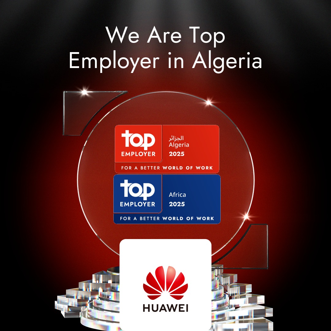 حيث أعلن ” معهد أفضل أصحاب العمل ” رسميًا عن قائمة أفضل أصحاب العمل الإقليميين لعام 2025، ويشرفنا أن نرى هواوي الجزائر معتمدة مرة أخرى كأحد أفضل أصحاب العمل في الجزائر. في كل عام، يكرم ”معهد أفضل أصحاب العمل”، وهو رائد عالمي في الاعتراف بأفضل الممارسات في مجال الموارد البشرية، الشركات الملتزمة بتوفير أفضل بيئة عمل ممكنة لموظفيها.