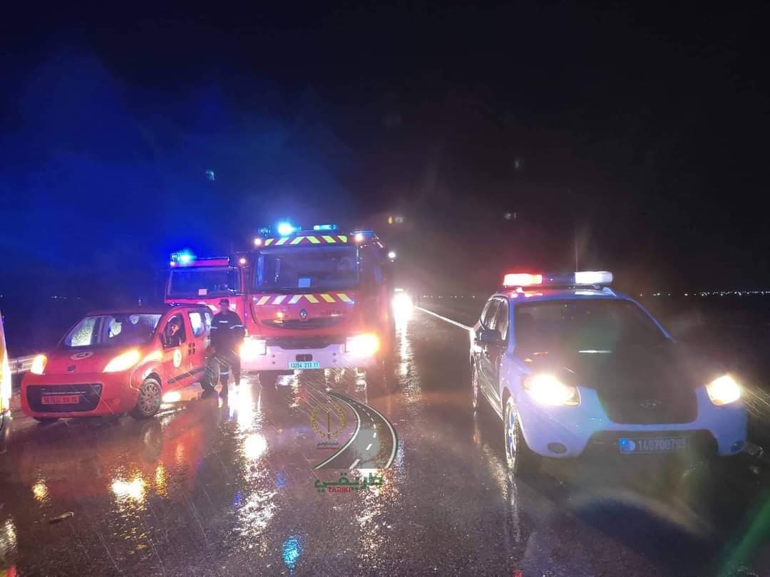 تدخلت وحدات الحماية المدنية لولاية الجلفة في حدود الساعة 19 و 33 دقيقة على إثر حادث مرور يتمثل في إصطدام بين شاحنة ذات نصف مقطورة وسيارة بالطريق الوطني رقم 01 ببلدية عين الإبل خلف وفاة 03 أشخاص وإصابة 02 آخرين تم إسعافهما و نقلهما للمستشفى المحلي.