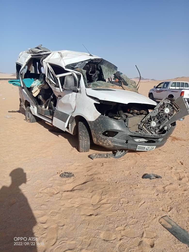 تدخلت وحدات الحماية المدنية لولاية جانت على الساعة 14.50 دقيقة على إثر حادث_مرور، انقلاب لحافلة نقل مسافرين تربط خط جانت – إليزي بالطريق الوطني رقم 3 باتجاه برج الحواس على بعد 80 كلم من جانت.