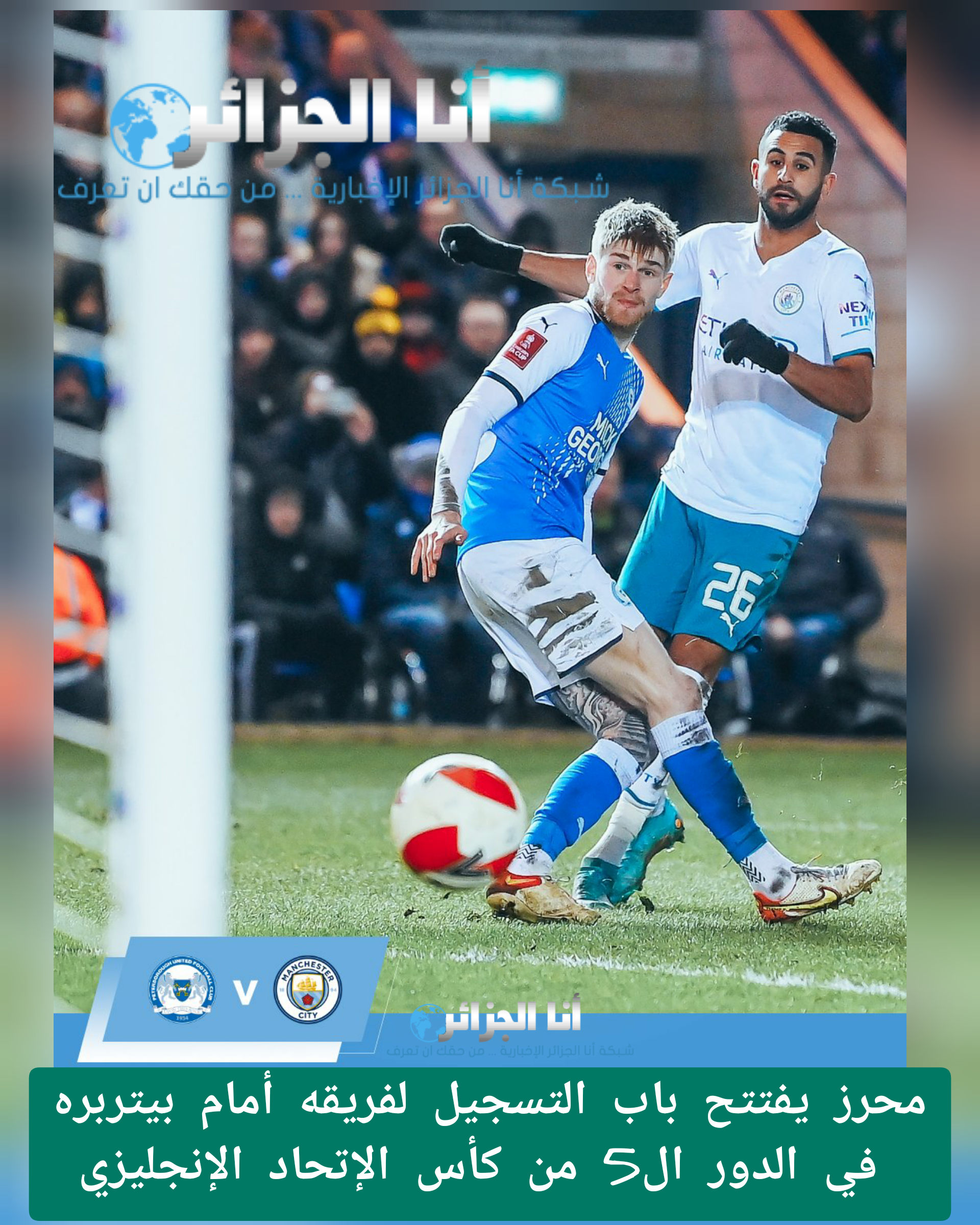 محرز يفتتح باب التسجيل لفريقه مانشستر سيتي أمام بيتربره في الدور الخامس من كأس الإتحاد الإنجليزي.