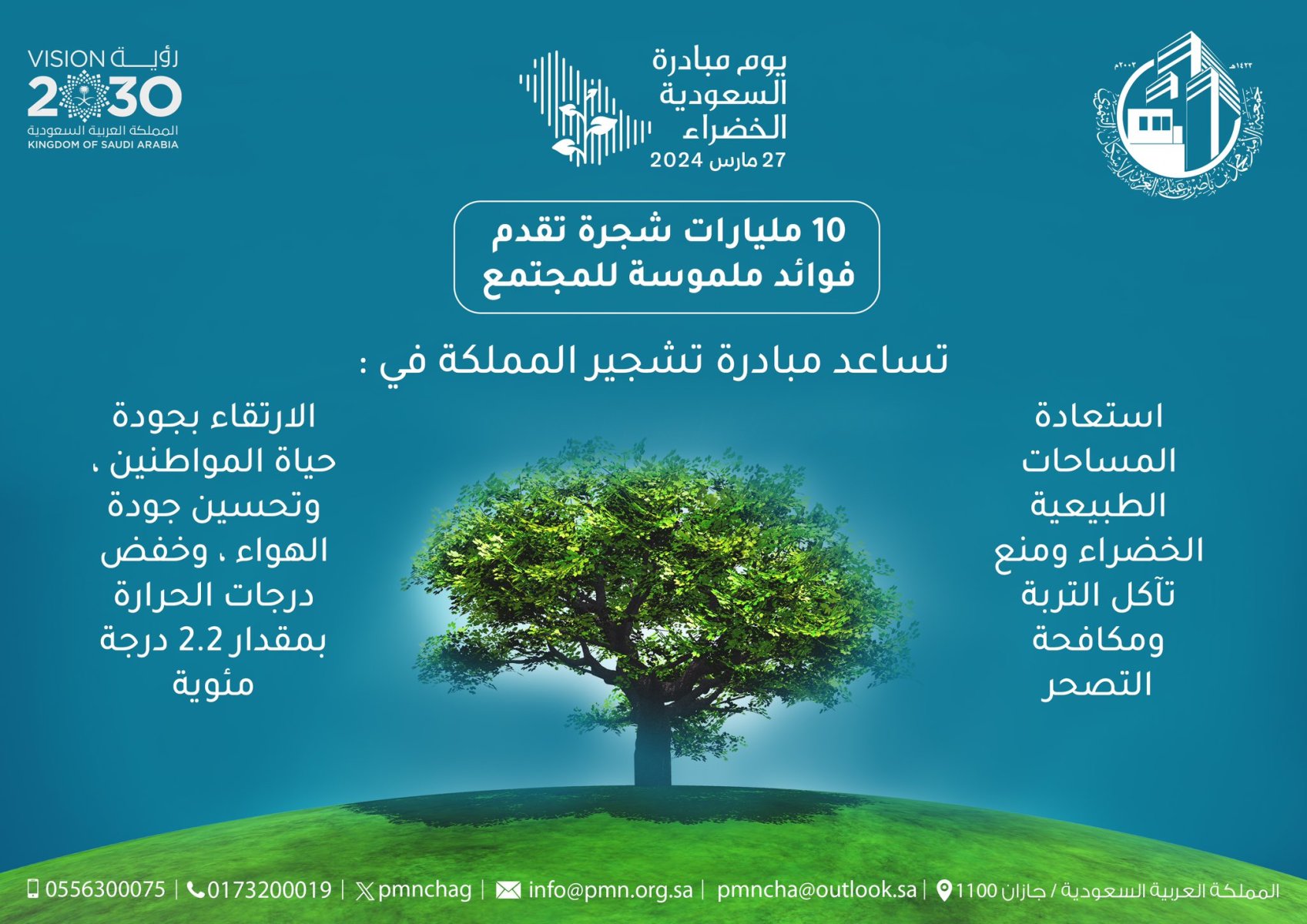 وأوضح أن هاتين المبادرتين تأتيان تعزيزاً للجهود البيئية القائمة في السعودية خلال السنوات السابقة وفق رؤية 2030، نظير رغبة المملكة الجادّة بمواجهة ما عانته من تحديات بيئية تمثلت في ارتفاع درجات الحرارة وانخفاض نسبة الأمطار وارتفاع موجات الغبار والتصحر، وجزء من جهودها لتعزيز الصحة العامة ورفع مستوى جودة الحياة للمواطنين والمقيمين فيها.