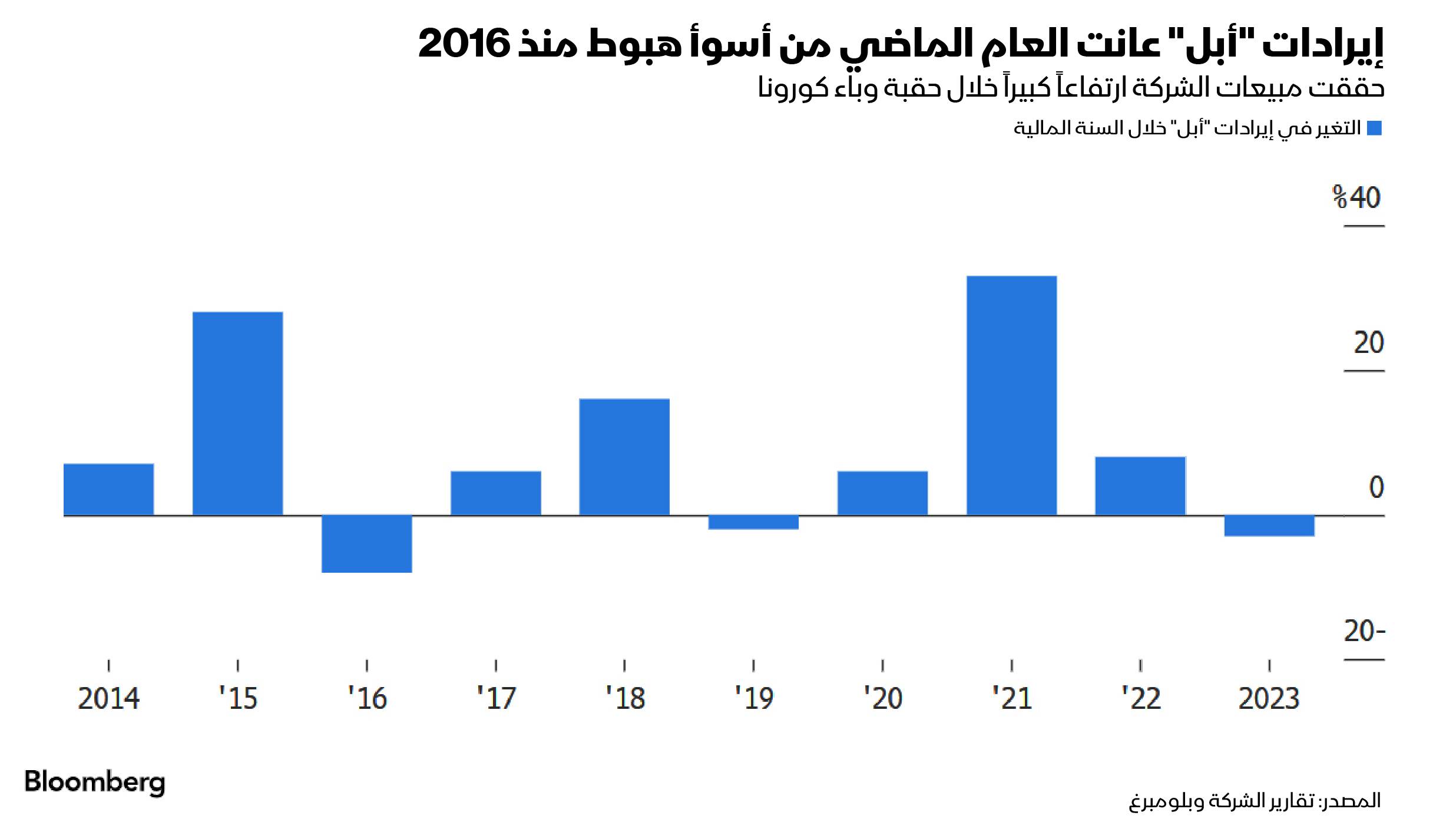 هبطت إيرادات “أبل” 3% خلال السنة المالية الماضيةالمصدر: بلومبرغ