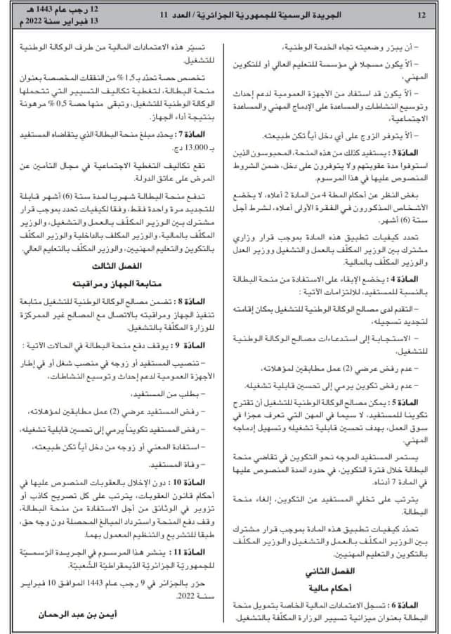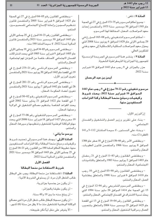 - صدر في الجريدة الرسمية؛ مساء اليوم؛ المرسوم التنفيذي الخاص بالإستفادة من منحة البطالة.