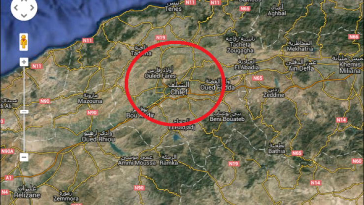 وحسب البحث في علم الفلك والفيزياء الفلكية والفيزياء الأرضية حدد مركز الهزة بـ 3 كلم غرب حجاج في الشلف.