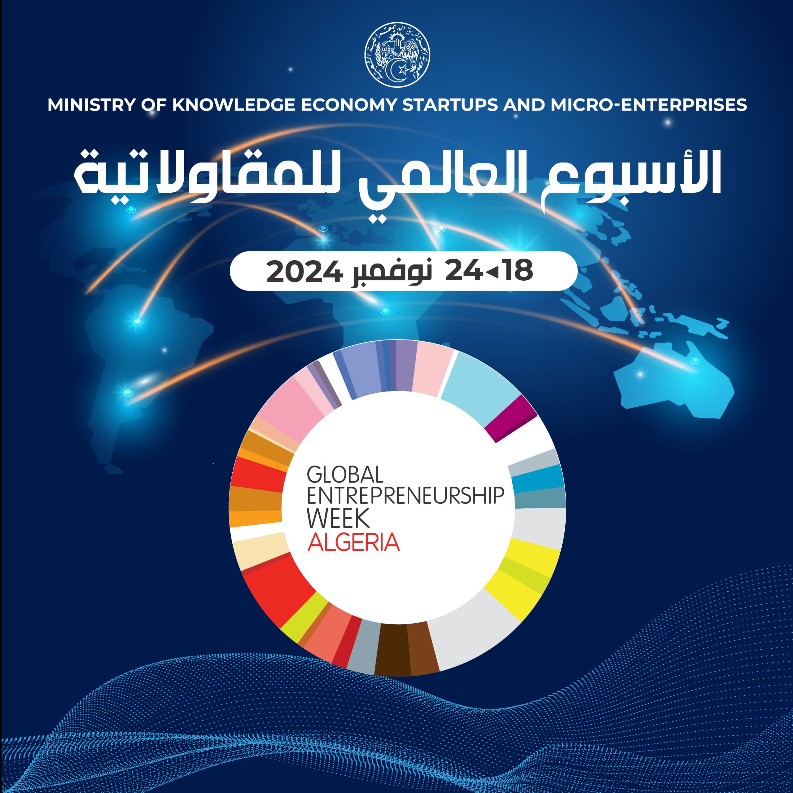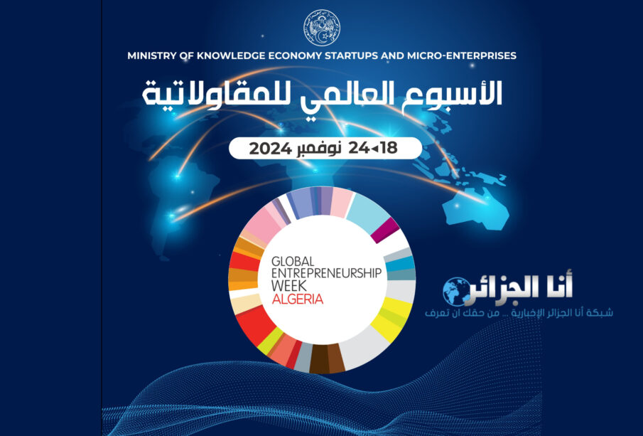 أنا الجزائر 🇩🇿 – من تنظيم وزارة إقتصاد المعرفة والمؤسسات الناشئة والمؤسسات المصغرة، وبالتعاون مع وزارة الداخلية والجماعات المحلية والتهيئة العمرانية، وزارة التعليم العالي والبحث العلمي، ومجلس التجديد الاقتصادي الجزائري، والشبكة العالمية للمقاولاتية، ستنطلق فعاليات الأسبوع العالمي لريادة الأعمال في الجزائر في 18 نوفمبر 2024، وتستمر حتى 24 نوفمبر في كامل ولايات الوطن. يهدف هذا الحدث الوطني إلى نشر ثقافة ريادة الأعمال وتعزيز الابتكار لدى الشباب.