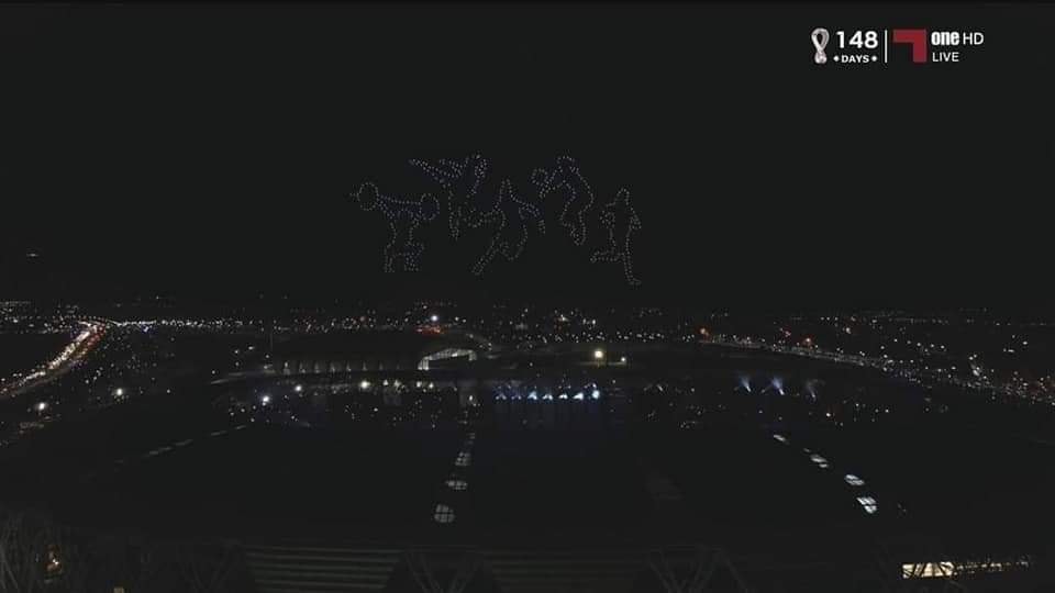 ليختتم الحفل بتقديم 500 كاميرا درون في عرضا زين سماء الملعب جسد من خلاله كل الرياضات التي ستكون حاضرة خلال دورة وهران.