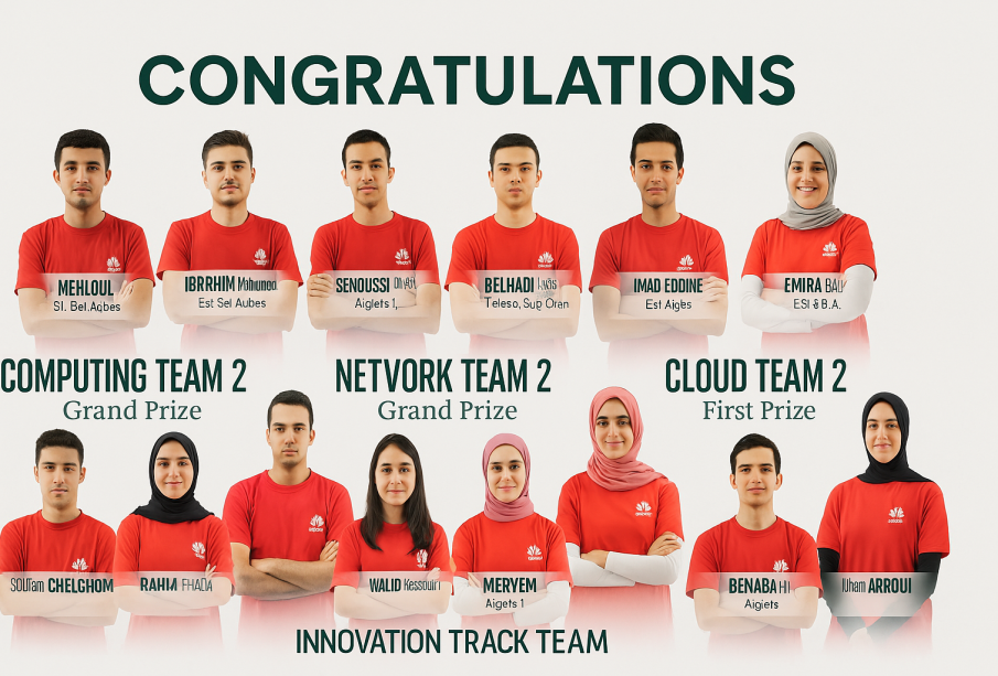 Les étudiants algériens ont remporté le grand prix dans la catégorie des réseaux, avec une équipe composée de Merzouka Ilyas de l’École supérieure des télécommunications de Oran, Belhadi Aya Sarah de l’Université d’Alger 1, et Senoussi Ibrahim de l’École supérieure d’informatique de Sidi Bel Abbès. Dans la catégorie informatique, l’équipe composée de Talbi Abdelrahman, Mehloul Mohamed et Della Abdelrahman, tous de l’École supérieure d’informatique de Sidi Bel Abbès, a remporté le grand prix des qualifications régionales. Dans la catégorie cloud, l’équipe composée de Makran Imad Eddine, Ben Cheikh Abdelwahab et Bali Amira, de l’École supérieure d’informatique d’Alger et de Sidi Bel Abbès, a obtenu la première place dans les qualifications régionales.