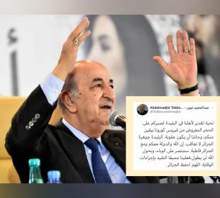 وجه رئيس الجمهورية عبد المجيد تبون، اليوم الأربعاء، رسالة إلى سكان ولاية البليدة. وكتب الرئيس تبون في تغريدة على تويتر: “تحية تقدير ...2020-03-25أول شعبان غدا الخميس وترقب هلال رمضان يوم 23 أفريل