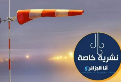 أبرقت مصالح الديوان الوطني للأرصاد الجوية، اليوم الثلاثاء، تنبيها من المستوى الثاني باللون البرتقالي يفيد بهبوب رياح عاتية في عدد ...تحذير من رياح عاتية بسرعة 80 كلم/سا وأمواج تصل إلى 4 أمتار على هذه السواحل