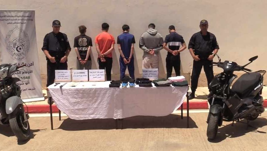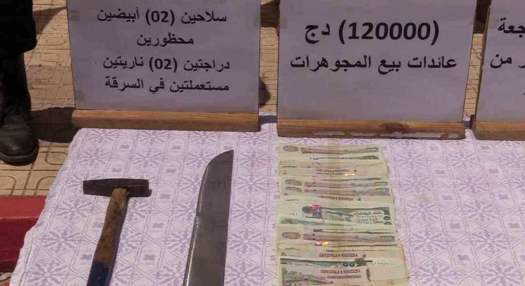 L’affaire a débuté suite à un appel reçu par la brigade depuis la salle des opérations du centre de commandement et de contrôle de la sûreté de la wilaya d’Alger, signalant un braquage dans une bijouterie située dans la commune d’Aïn Benian, effectué à l’aide d’armes blanches prohibées, avec une tentative de fuite à bord de motocyclettes. À la suite de cela, les éléments de la brigade ont entamé une série d’investigations sur le terrain, qui ont permis d’identifier les suspects et d’arrêter cinq personnes, avec la saisie des éléments suivants :